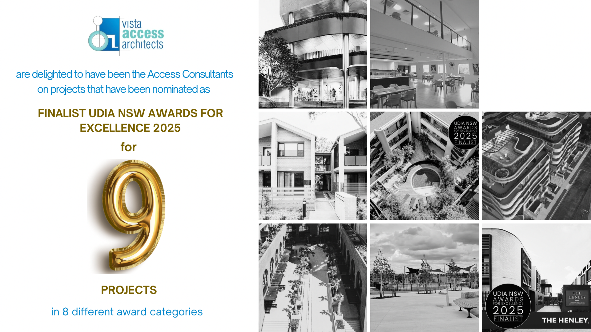 9 of Vista Access projects Finalists in UDIA NSW AWARDS FOR EXCELLENCE 2025